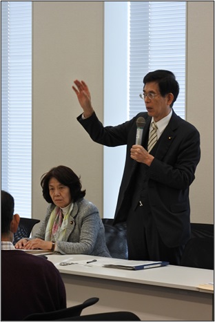 その後、国会議員と議員秘書33名の参加のもと「患者を切り捨てる国のあり方を問う」院内集会が開催され、園田昭人弁護団長がノーモア・ミナマタ第2次国賠訴訟の取り組みを報告しました。