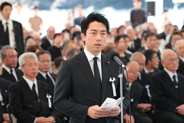(祈りの言葉を述べる、小泉進次郎環境大臣)