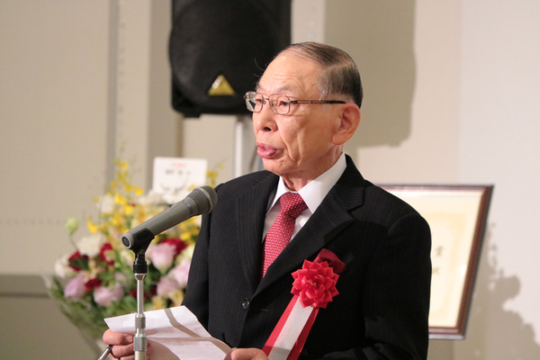 祝う会では、若月賞選考委員の一人でもある宮本憲一氏が「現場で最も検診・診療をした医師で、差別・偏見が激しかった水俣の地に診療所を創設し被害者救援活動の拠点をつくった、政府が怠っている疫学調査をして汚染地域を明らかにした、日常的に診療して被害者と向き合いながら69回もの政府見解とは異なる学会報告をして学会の発展に寄与した」と受賞理由を紹介しました。