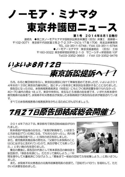 弁護団ニュース東京弁護団ニュース第1号を発行しました。