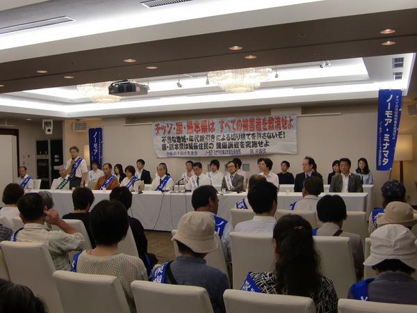 多くの水俣病被害者が取り残されているにもかかわらず,国は、平成24年7月末,水俣病特措法の申請受付を締め切りました。国は,すべての水俣病被害者の救済を実現しないまま,水俣病問題の幕引きを図ろうとし,再び,水俣病被害者が多数取り残される状況となりました。