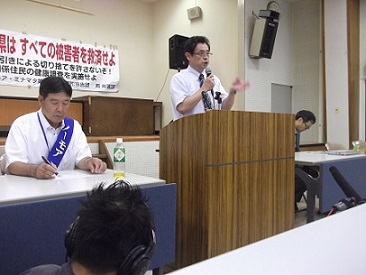 また,弁護団からは,中島潤史弁護士が因果関係(診断基準)及び診察方法に関する意見陳述をおこない,疫学,診察方法の正当性を訴えました。