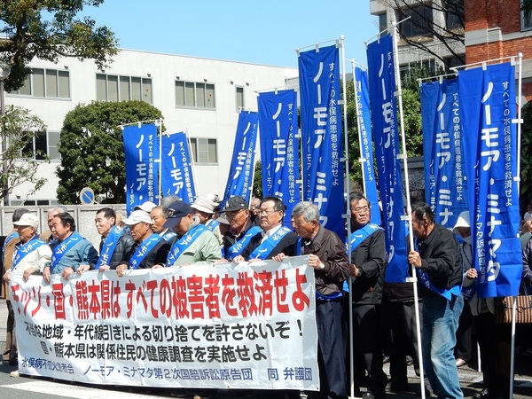 第9陣の原告(長島出身)から決意表明があり,体全体の症状に苦しんでいること,長島が旧長島町と旧東町で分断されていることのおかしさ等を訴えました。