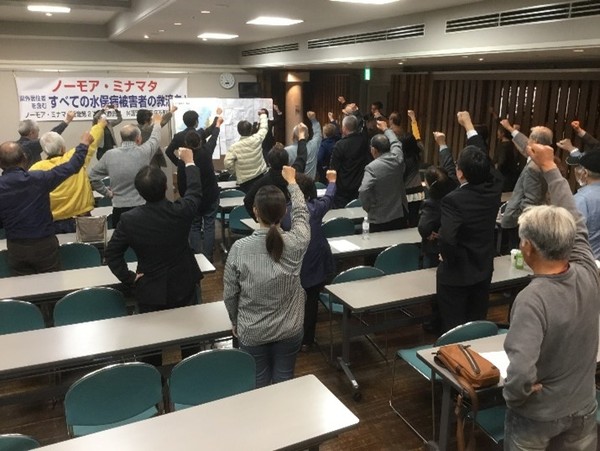 谷智恵子弁護士は、「陳述書は出せないかもしれないと思っていたが、みんなで頑張った。尋問はお弁当をもって来てもらうことになる。これからのたたかいのほうがよほどしんどい。一人一人が水俣病ではないと言われていることを思って、担当弁護士とともに頑張っていきましょう」と、原告を鼓舞しました。