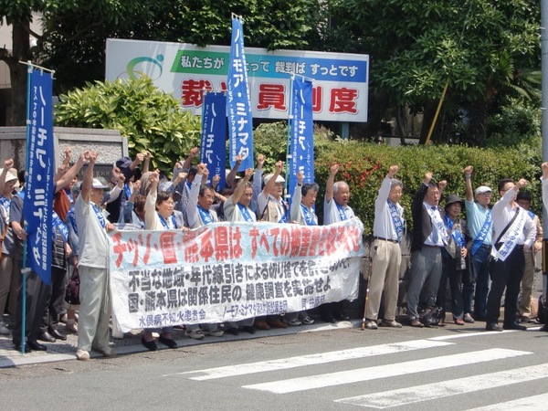 日々症状に苦しんでいる原告も、暑い中、大勢集まりました。