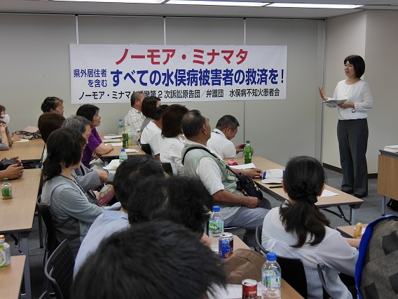 その後,福光弁護士が,今回提出した書面の内容である曝露に関し,立証資料が乏しいことによって原告が不利益を被ることが不当であること,行政における線引きの不合理性,不知火海全域が汚染されており,地域外・年代外の原告も曝露されていることなどを訴えました。