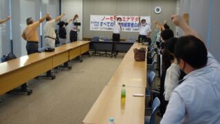 本日、東京訴訟の原告・支援者らは、裁判の再開を求めて裁判所前で宣伝行動を行いました。 前々任の鈴木正紀裁判長が、遅れて提...